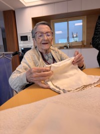“Gràcies a les sortides de qualitat que organitzeu a veure museus, exposicions, la platja, vermuts, els cafès dels jueus... Ens feu sentir vives. Només de pensar que tornarem a sortir ens fa sentir contents i ansiosos perquè arribi el dia. Mai vaig pensar que estaria tan contenta de viure en una residència. Dos dels meus fills m'han proposat diverses vegades tornar-me a casa, però no concebo passar l'última etapa de la meva vida sense estar envoltada de vosaltres.”