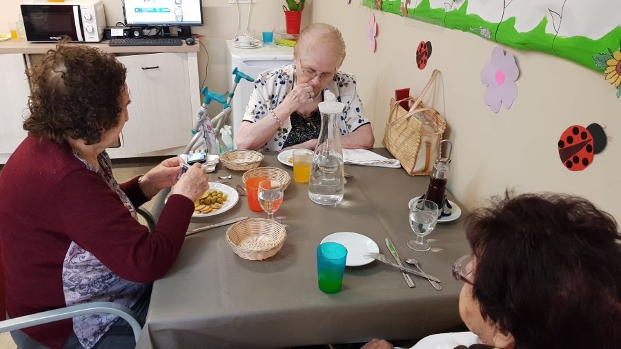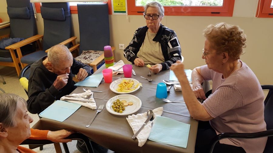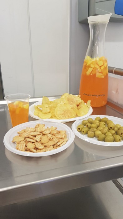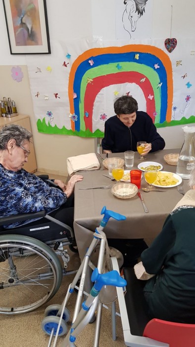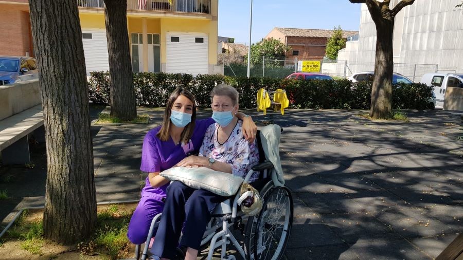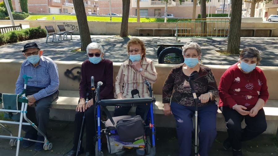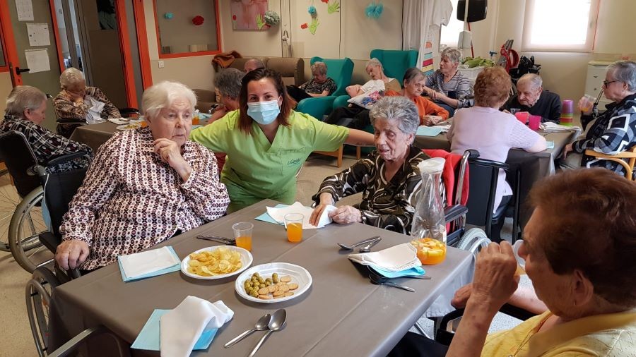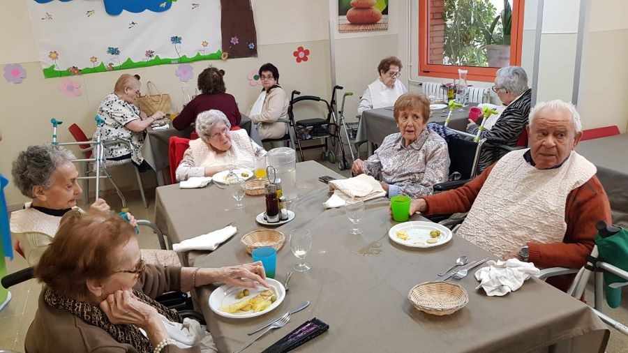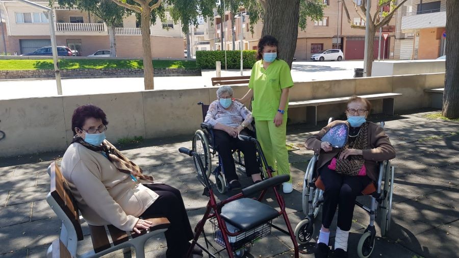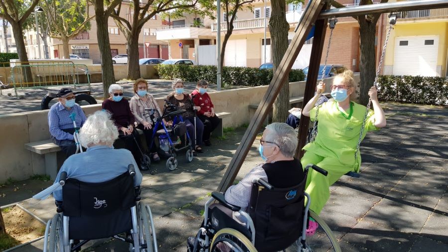 El dissabte vam sortir a la plaça de davant de la residència i el diumenge volíem fer vermut a fora del jardí però va ploure. La pluja però, no ens va impedir poder celebrar el vermut amb els nostres companys!