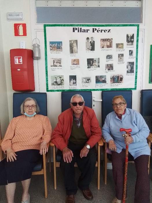 Vino el marido de Pilar para conocer el centro, a los compañeros y ver el mural del Avi Protagonista de su mujer