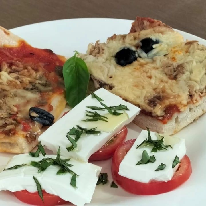 Italia nos ha conquistado con su gastronomía . Ensalada caprese i pizza. Para chuparse los dedos!