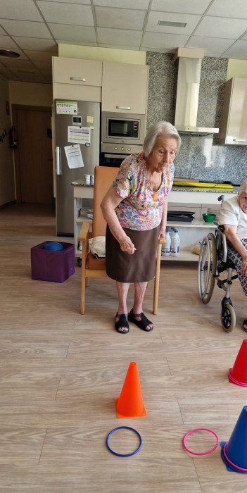 Ahir va venir la fisioterapeuta i ens va fer activitats psicomotrius, com ara encertar la pilota dins d'una capsa, encertar les anelles als  conos ...