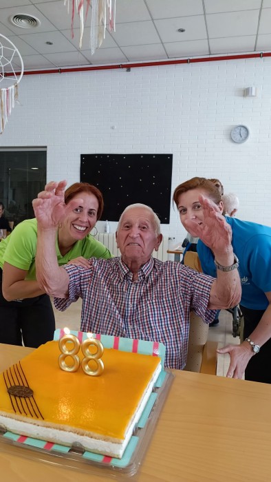 Aquesta tarda hem celebrat l'aniversari de Rogelio, n'ha fet 88! I la seva família ens ha portat un pastís per compartir; que ja us diem que estava boníssim! Gràcies!