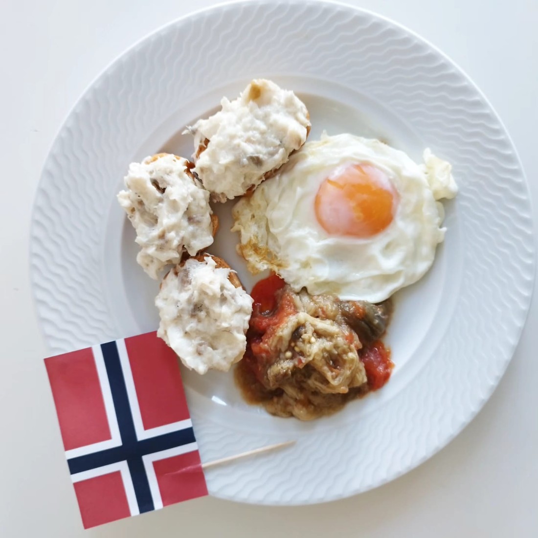 A través del plat lliure del menú de dinar, degustem una delícia típica de Noruega: brandada de bacallà amb l'acompanyament mediterrani d'escalivada i ou ferrat. Ens ha encantat, de ben segur que repetirem.