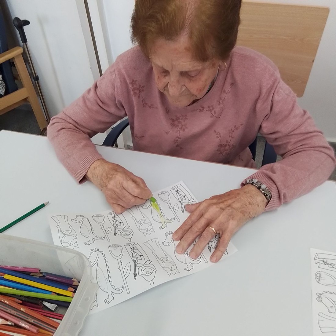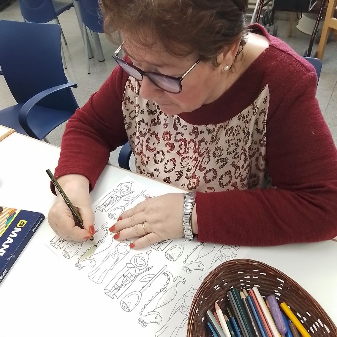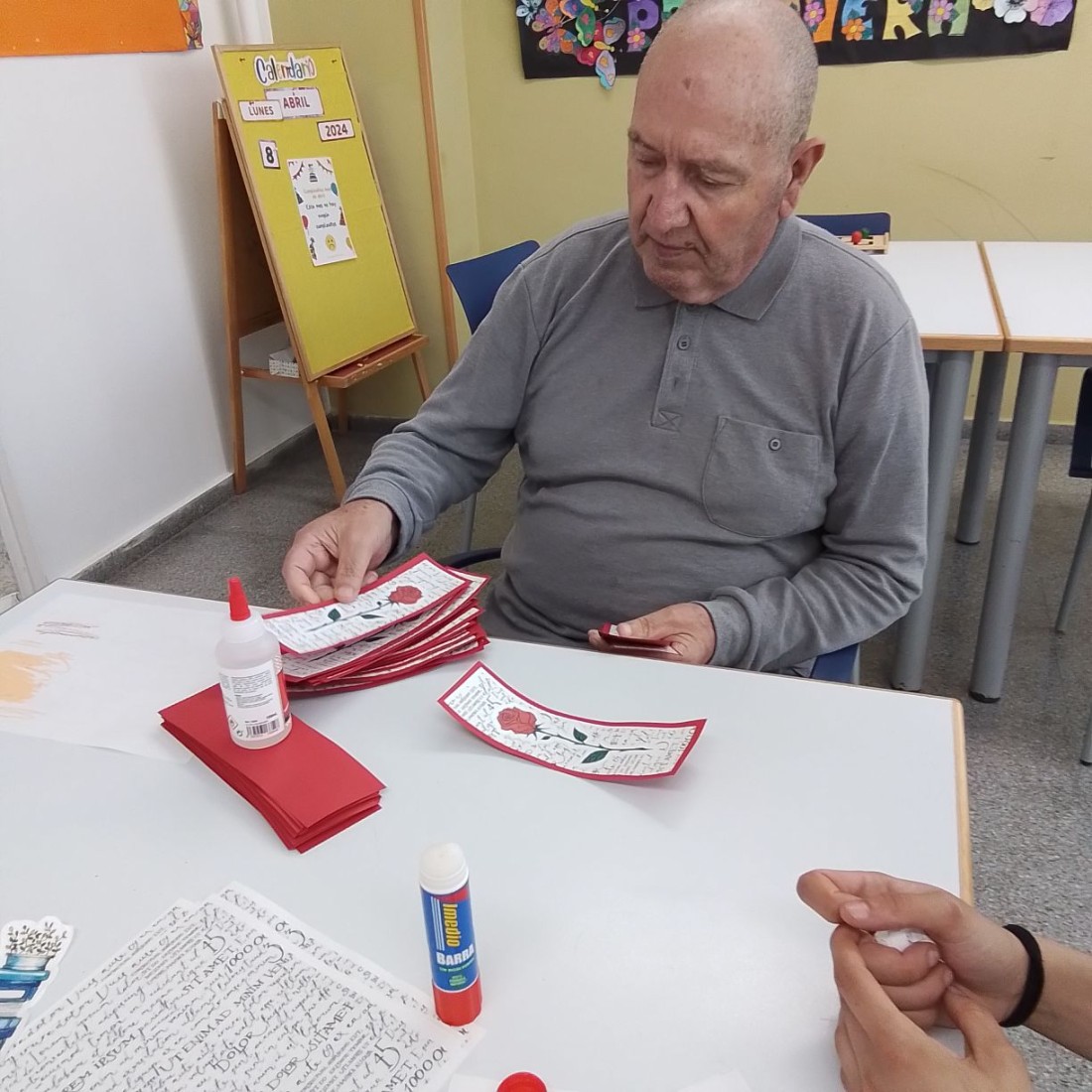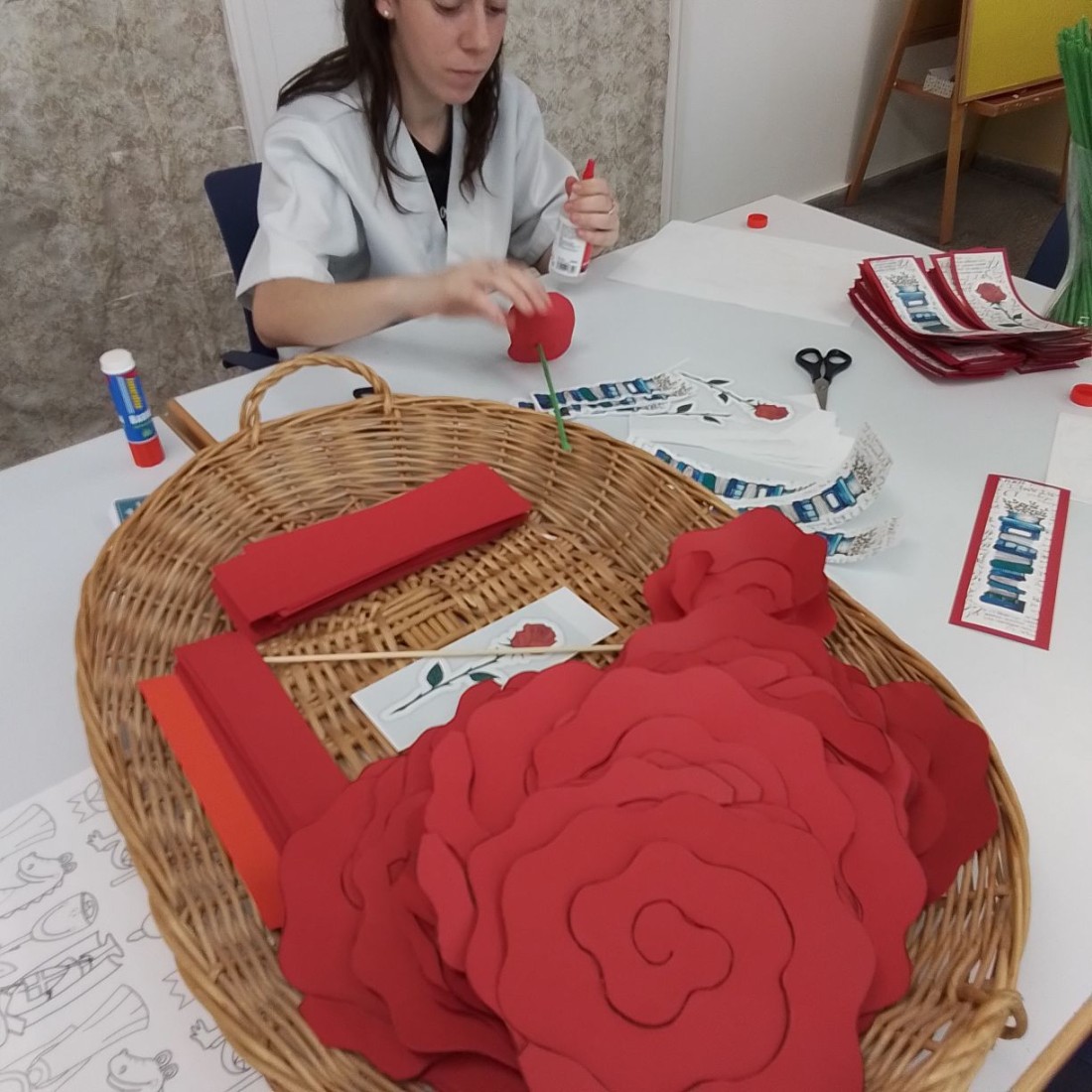 Preparándonos para Sant Jordi, buena participación de los usuarios pintando y recortando las flores.