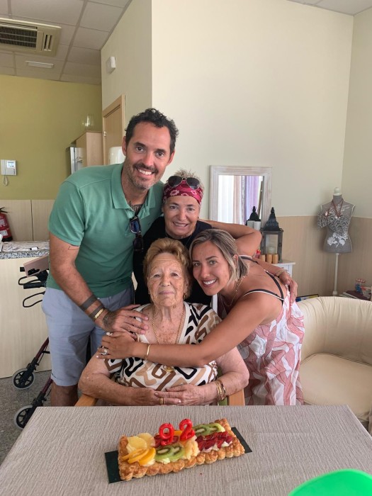 La Isable, que aquest mes és la l'avia protanista del Centre de Dia de Mont-roig ha fet ni més ni menys que 92 anys!! i la seva familia ho ha volgut celebrar amb nosaltres i ens han portat aquestes bandes de fruita que han gaudit els nuestros residentes!!