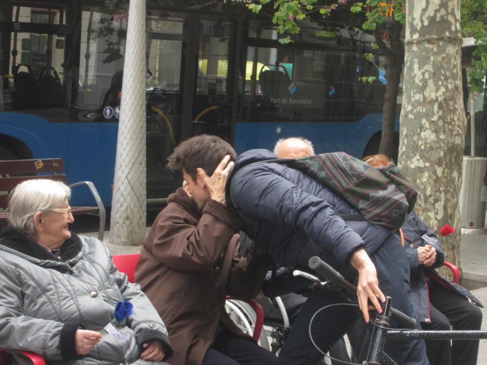 A Sant Antoni vam celebrar Sant Jordi sortint a repartir roses amb "una rosa, una abraçada", vam repartir totes les flors que havíem fet i vam aconseguir un munt de petons i abraçades.