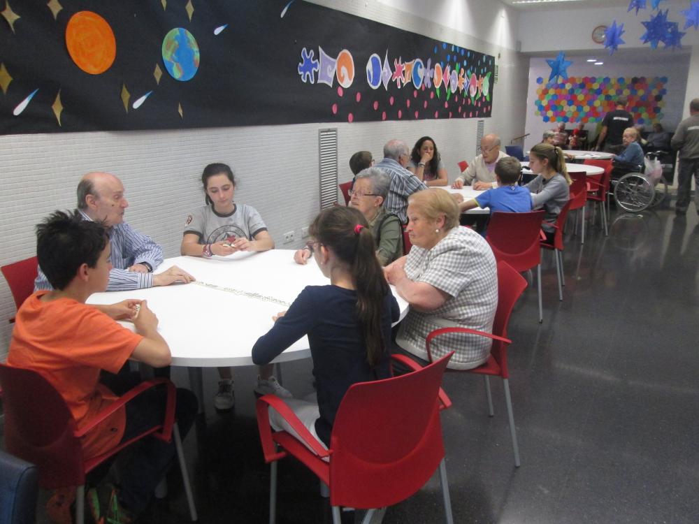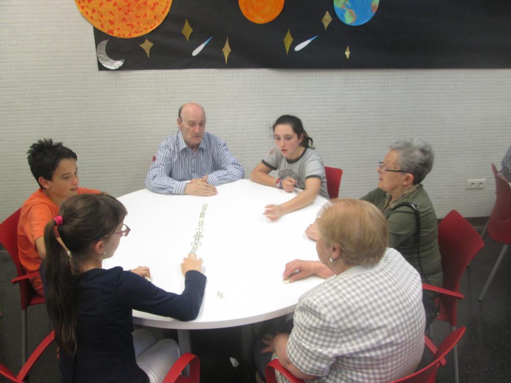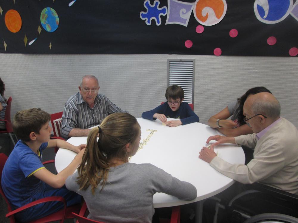 A Sant Antoni vam tenir la sort de compartir el joc de dòmino amb uns nens i nenes que feien un voluntariat. Durant tres setmanes van avenir a compartir aquesta estona amb nosaltres, i com a comiat ens van regalar una foto de grup.