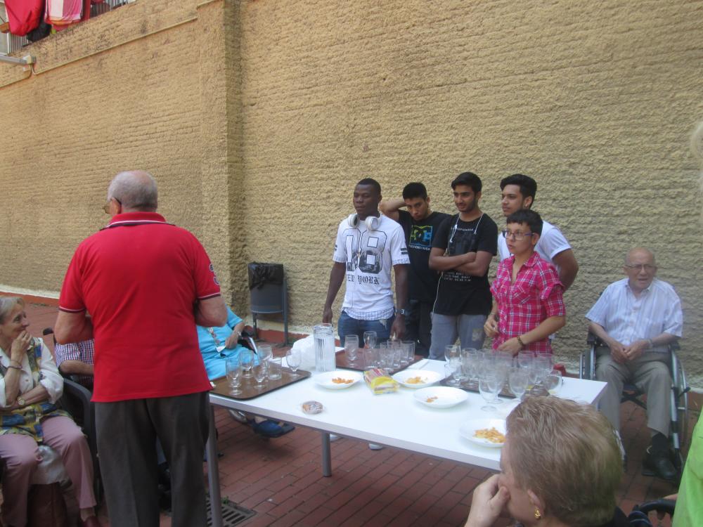 Aquest matí, els joves que han instal·lat el reg automàtic al nostre jardí han vingut a acomiadar-se amb un petit pica-pica.