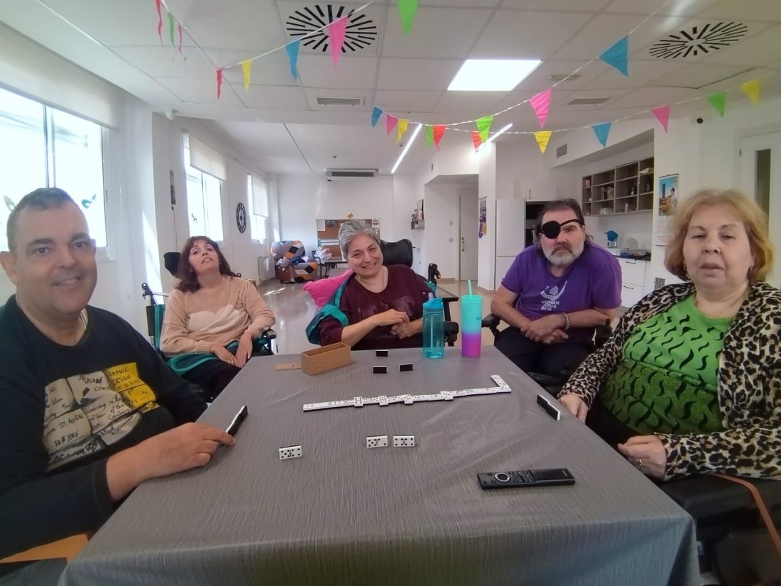 Alguns dels usuaris fent una partida de dominó.
