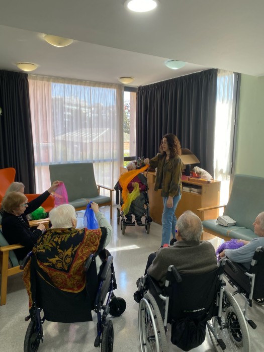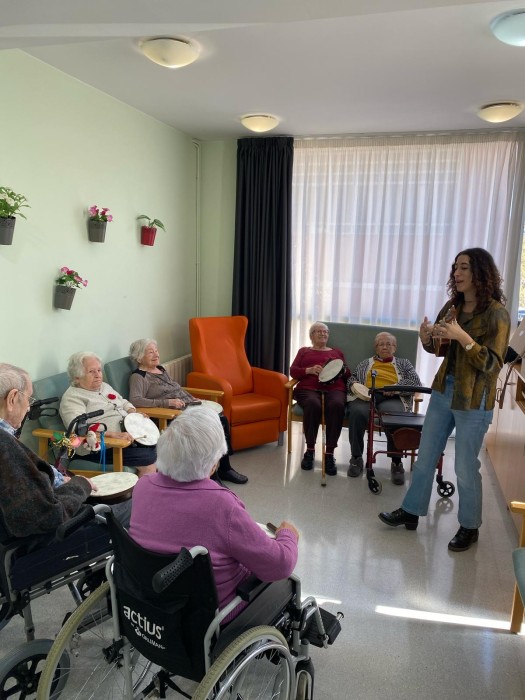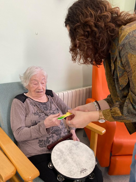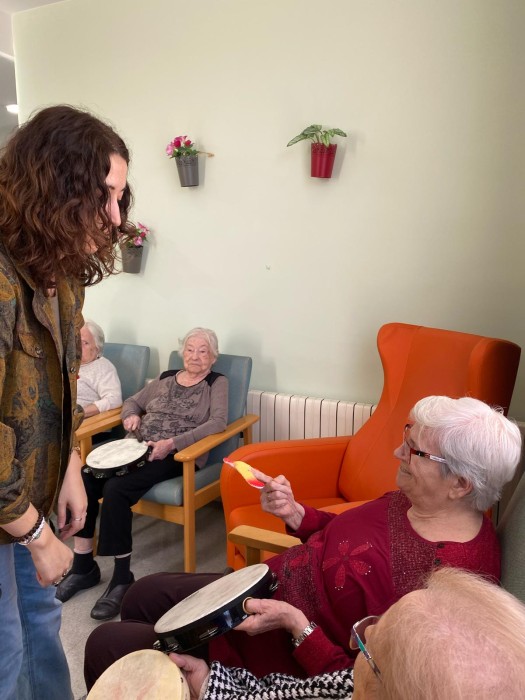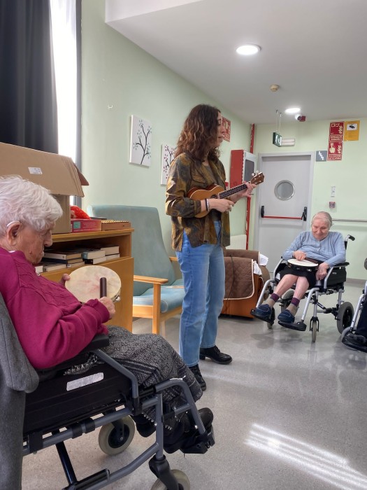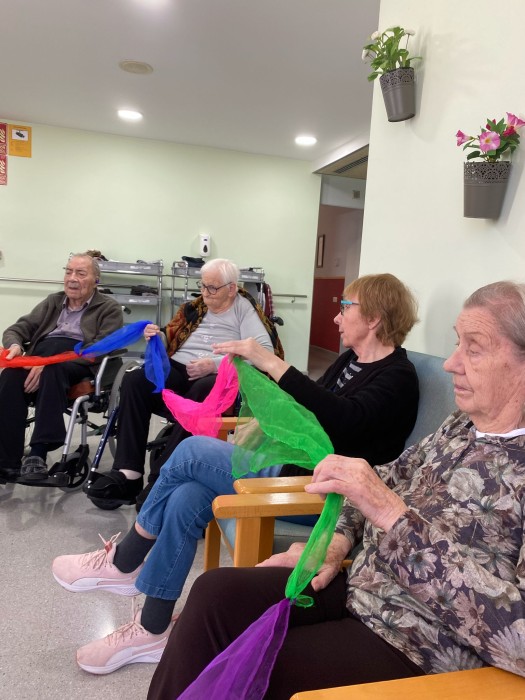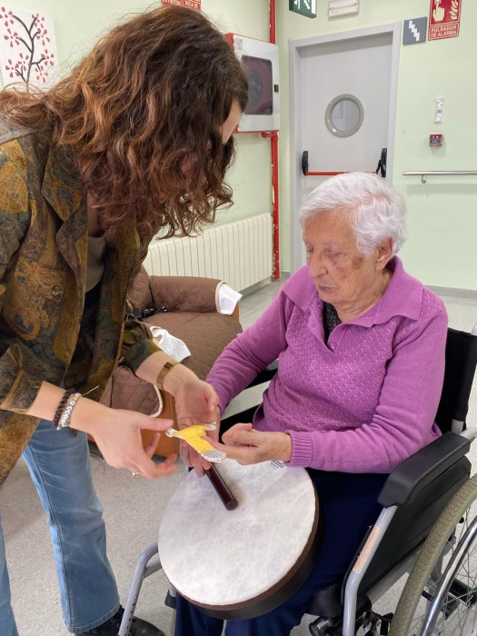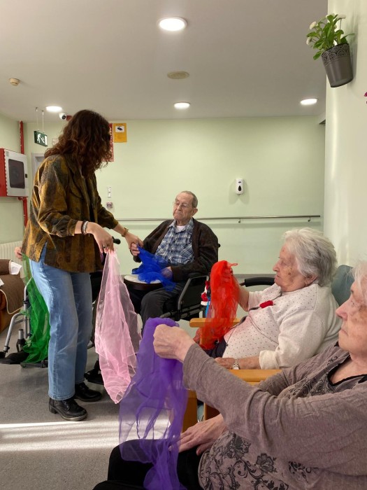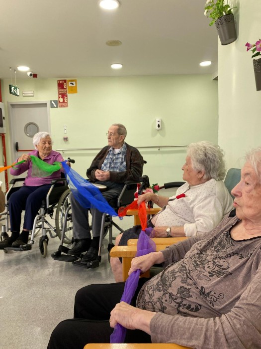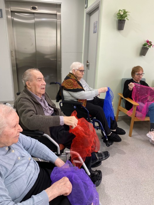 Aquest dimarts hem pogut gaudir d'una sessió de musicoteràpia més lúdica, hem tocat diferents instruments i després hem jugat a jocs musicals i altres més dinàmics amb mocadors de colors i objectes. La música va molt bé per treballar la reminiscència gaudint de cada moment.