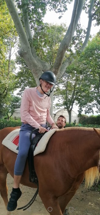 El contacte amb el cavall millora l’equilibri, la coordinació, el to muscular i la concentració, alhora que fomenta l’autoestima i la confiança. És una activitat terapèutica que combina beneficis mèdics, psicològics i educatius en un entorn natural i motivador.