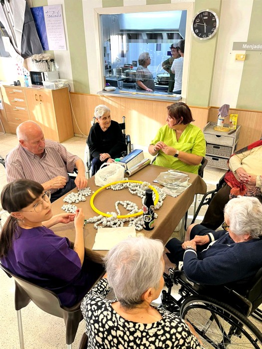 Estem preparant la festa d'aniversari, i fent manualitats en equip. També aprofitem per a conversar una estona i ens entretenim fent les misterioses boletes! Jejeje