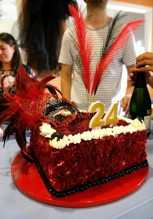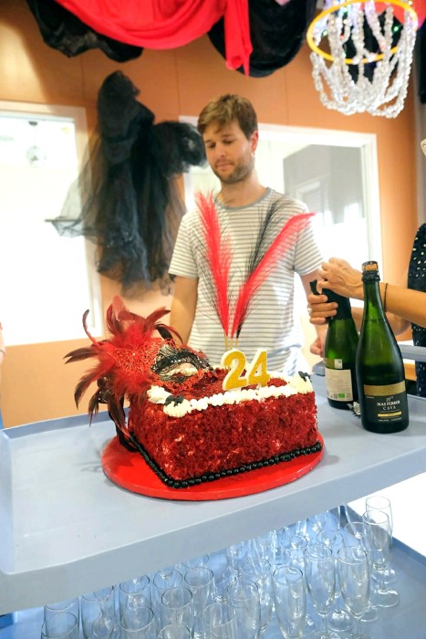 En l'aniversari amb temàtica de cabaret vam tenir molta sort, Laura va fer el millor pastís red velvet de l'univers. També uns petits bombons individuals meravellosos. Agrair a l'equip que tenim en la cuina, sou el millor.