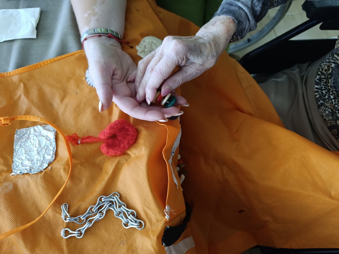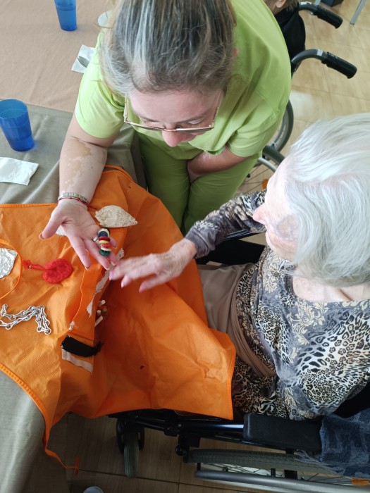 L’estimulació sensorial és un instrument que s’utilitza per afavorir un major desenvolupament dels sentits de les persones majors, afavorint el coneixement de si mateixa, dels altres i de l’entorn que l’envolta. Es treballen els cinc sentits, de manera autònoma (estimulació sensorial). Els seus beneficis són entre d’altres, la prevenció de malalties neurodegeneratives o la deterioració cognitiva. A Mig Camí hem fet els nostres davantals sensorials per poder treballar millor l'estimulació!!