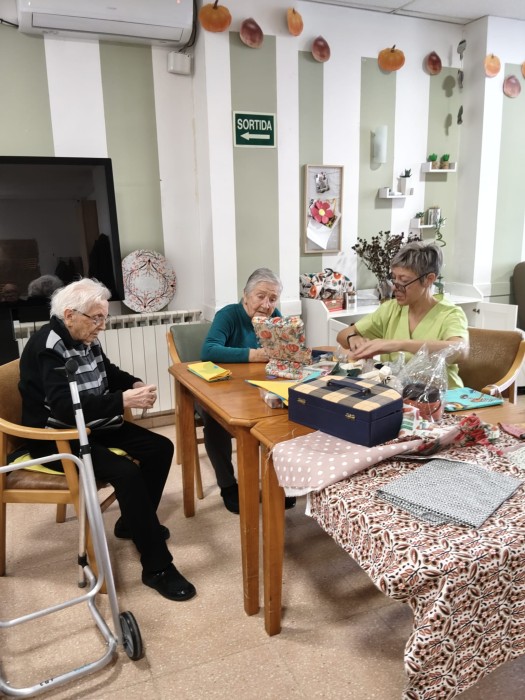 Cada setmana dediquem una estoneta a fer tallers ocupacionals, i actualment, ens estem posant les piles amb la màquina de cosir. Estan fent autèntiques obres d'art!!!