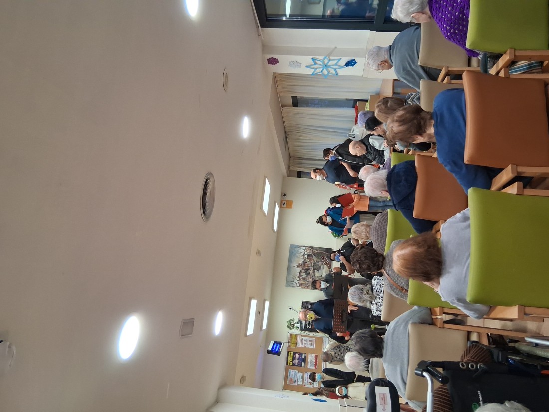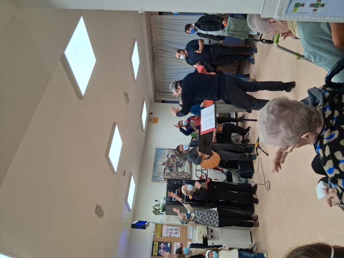 Ens van venir a cantar de l'església evangèlica i ens van portar un present per tots els usuaris.