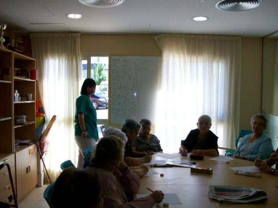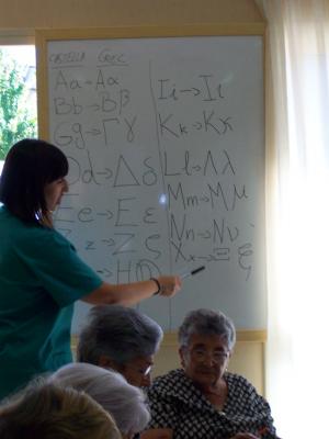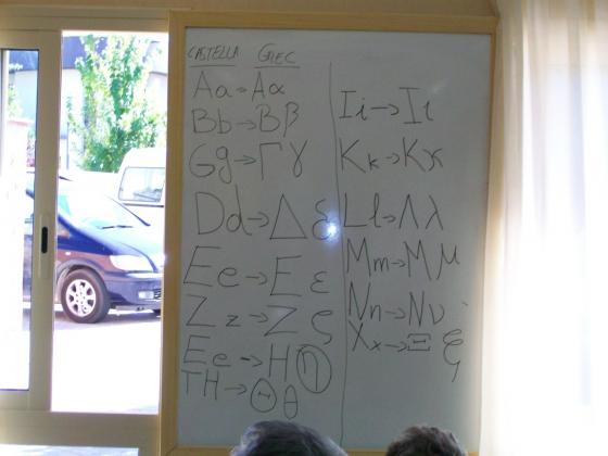 Avuí en un dels nostres tallers cognitius per a vàlids ens hem introduït al mervallós món de l'escriptura grega. Primer els ha costat una mica perqué no entenien aquelles lletres tant rares que no tenien res a veure amb les que ells coneixien. Peró després l'opinió ha canviat quan han pgut escriure el seu nom en grec. Els ha paregut molt curiós.