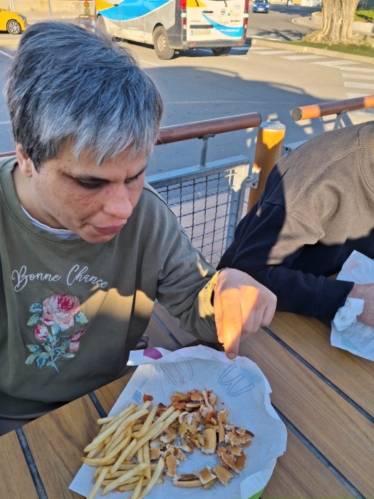 Una bona hamburguesa amb patates cruixents i ben calentes.
