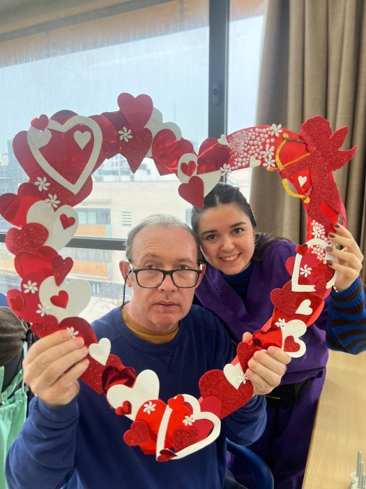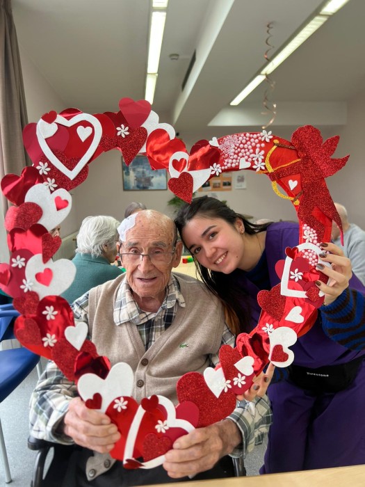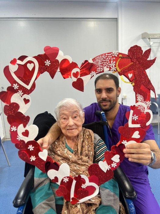 Vam preparar un photocall amb un gran cor perquè residents i equip poguessin fer-se fotos ben especials i guardar un record d’aquest dia tan bonic També vam gaudir d’unes postres boníssimes decorades amb cors que van endolcir encara més la celebració
