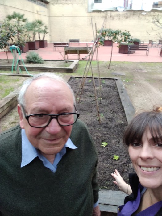 El sr. Miquel amb ajuda dels tècnics està arreglant l'hort de Sant Antoni