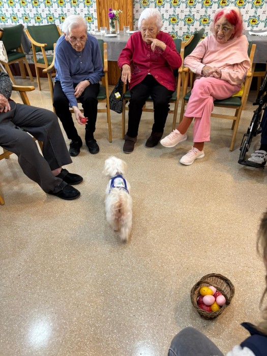 Avui hem realitzat taller de caninoterapia i hem treballat amb els gossets a fer una mona i recollir ous de pasqua que ja s'apropa!