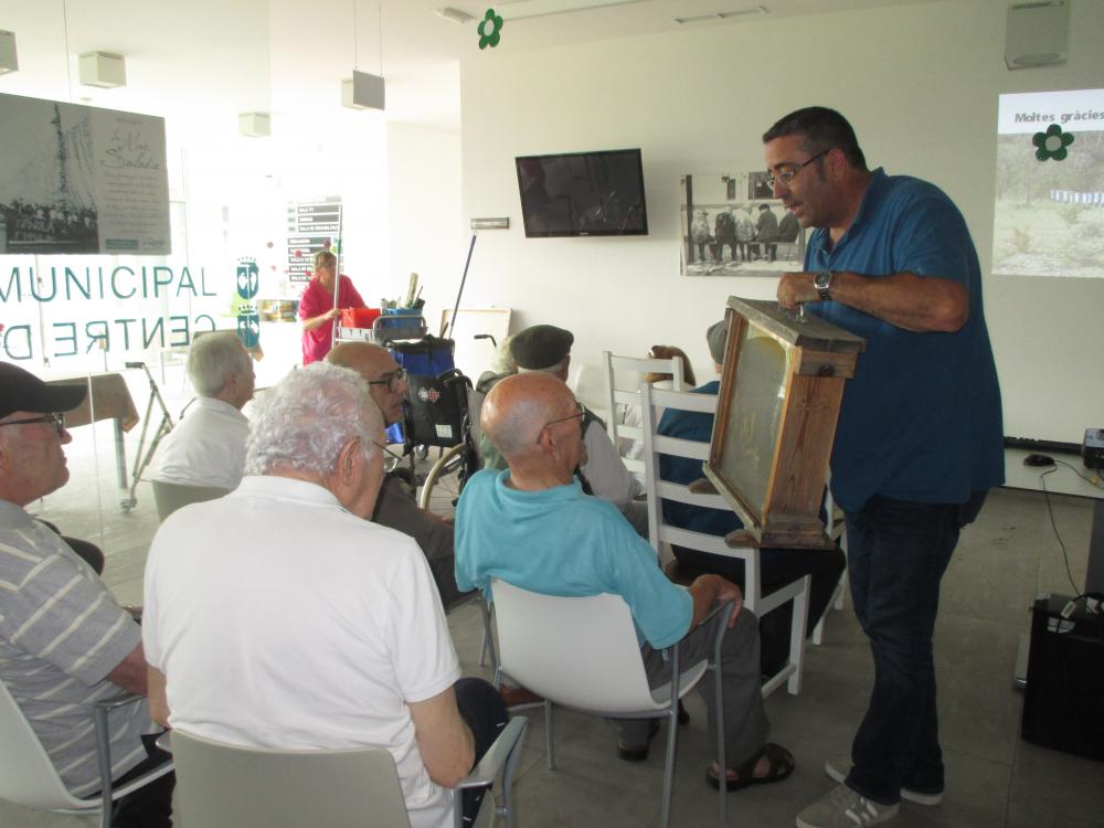 La setmana passada, el regidor de medi ambient de Vinaròs, acompanyat d'un jove apicultor, ens va visitar al Centre de Dia per tal de realitzar una xerrada on s'explicà el procés d'elaboració de la mel. Durant la xerrada vam aprofitar per a berernar pà amb mel que ells mateixos van portar... estava boníssima!!!