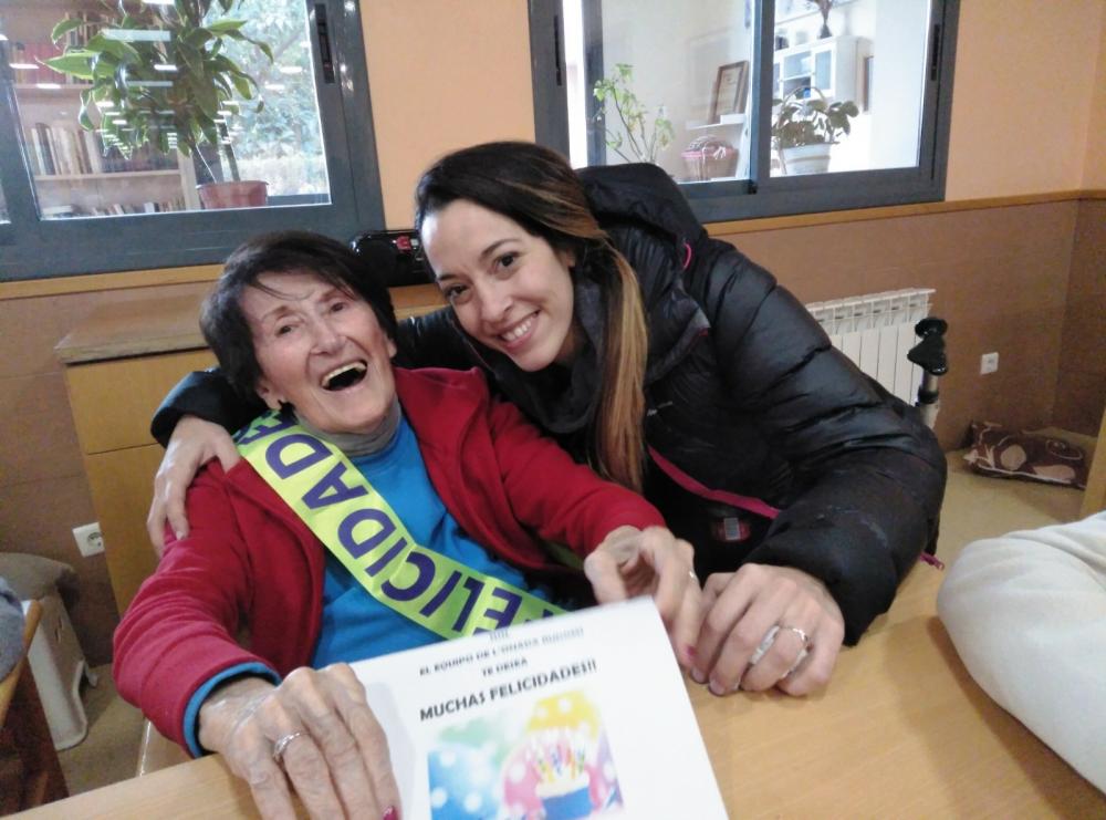 Després del berenar hem fet una sessió de música i ball. Cadascun dels residents que celebrava l'aniversari demanava la seva cançó preferida. Ha estat molt divertit!