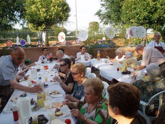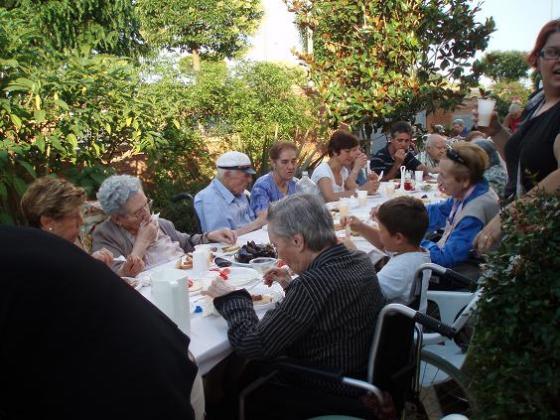 Un cop les nostres avies es va posar ben guapes al taller d'estètica, vam començar a preparar-ho tot per la revetlla, equip de so, taules, cadires...Puntuals com un rellotge vam començar a sopar, amb molt bona companyia de les families dels nostres avis....Continuarà...