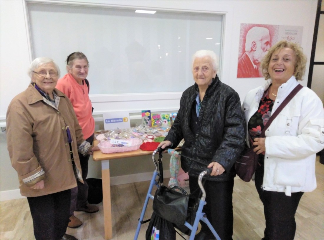 Durant les últimes setmanes els nostres residents estan elaborant manualitats i artesania per tal de recaptar fons per la Marató de TV3: decoració nadalenca, polseres, agulles de pit, collages, porta-espelmes... El cap de setmana vam montar una parada al centre, on també vam vendre coc ràpid.