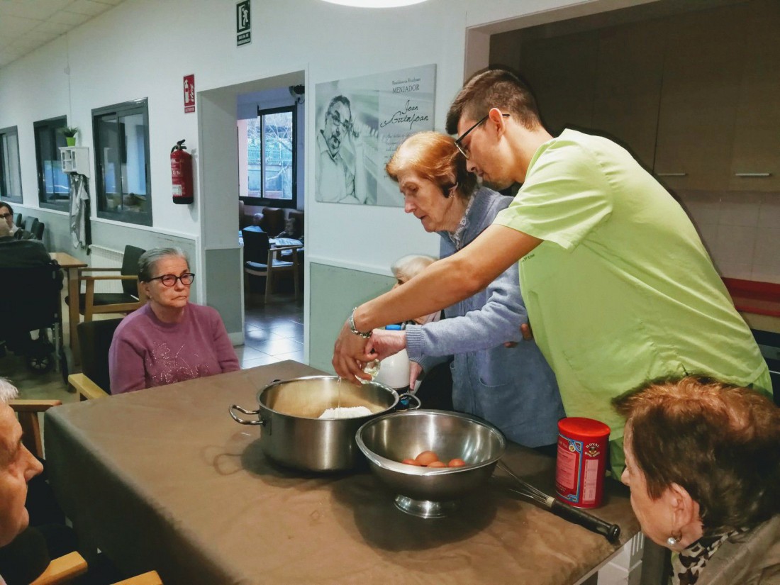 Una de les activitats que més agrada a molts dels nostres residents és cuinar. És per això que les activitats relacionades amb la cuina tenen un paper fonamental al nostre centre. Compartim imatges d'un taller de cuina on vam elaborar un pastís boníssim!