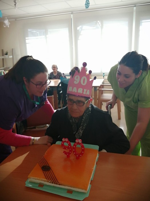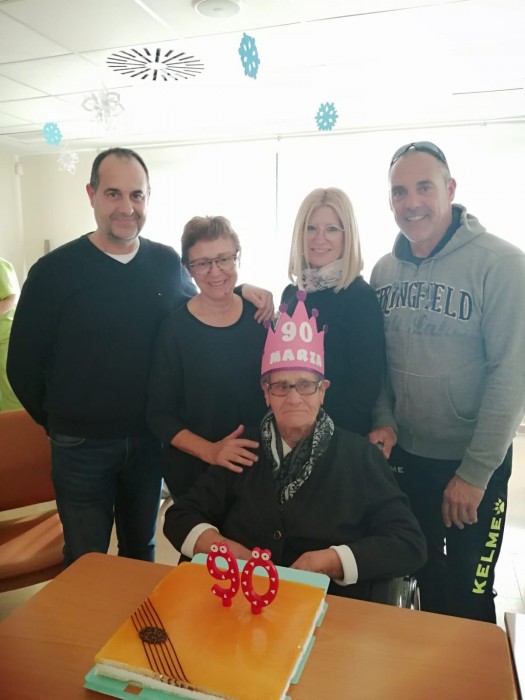 Aquesta tarda hem celebrat els 90 anys de la senyora Maria. Ha vingut la seva familia i, tots plegats, hem cantat i celebrat el seu dia!