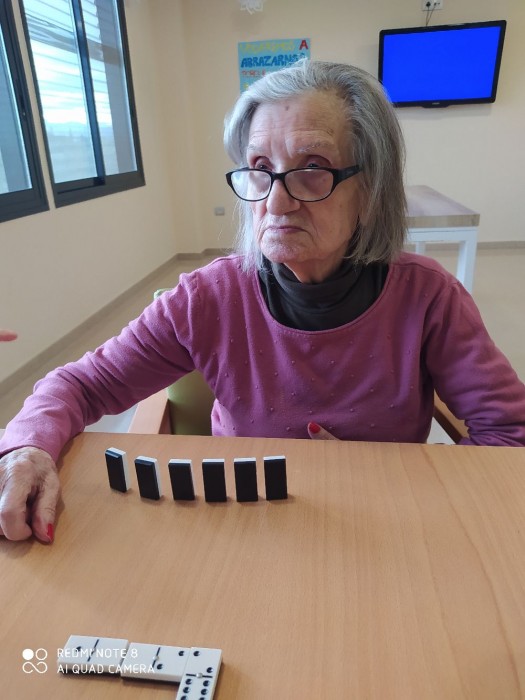 Aqui les rutines segueixen, així que no podia faltar la partideta de dòmino!! està interessant la cosa!!